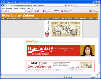 PROMOTION-BANNERErstellung eines Banners für die 10er-Tipps-Seite nach Ihren Vorgaben. |