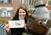 06.11.2009 SCHEIN NUMMER 3333 GEHT NACH CUXHAVENSo kann es kommen. Da betritt eine junge Frau aus Cuxhaven das InfoBüro und wird dafür auch noch beschenkt. Als Lohn für den Kurzbesuch, bei dem eigentlich nur ein Stadtplan den Besitzer wechseln sollte, wurde der Besucherin der Rotenburger Zehner mit der Nummer 3333 feierlich überreicht. Für Antje Pakusch kam das Geschenk völlig überraschend, zumal sie vom Zehner bisher noch gar nichts gehört hatte. Nun aber weiß sie, um was es geht und hat ihren Besuch auch gleich mit einem Einkauf in Rotenburg gekoppelt. Nahezu täglich gehen Zehner über die Ladentische im InfoBüro und bei der Shell-Station in der Harburger Straße. Der Schein hat sich zu einem ganz beliebten Geschenk entwickelt. Das ist auch verständlich, weil weit mehr als 100 Läden in der Stadt das Papier als Zahlungsmittel anerkennen. Mittlerweile haben auch die Stadtwerke die Vorteile der Wümme-Währung für treue Kunden entdeckt und verteilen Zehner mit eigenen Motiv als Belohnung für Kundentreue.